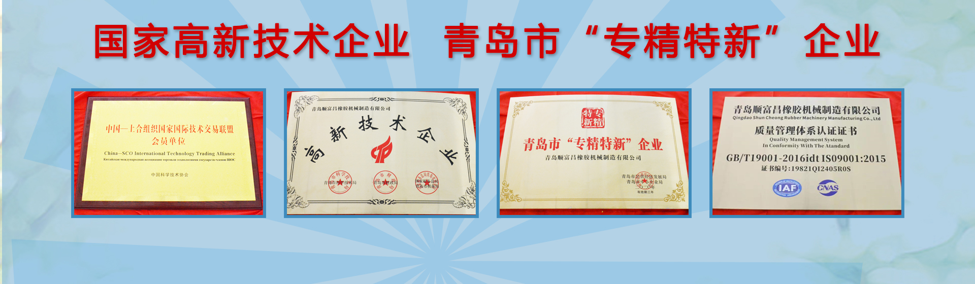 青島順富昌橡膠機(jī)械制造有限公司位于青島西海岸海洋高新區(qū),是國內(nèi)一家專業(yè)生產(chǎn)橡膠機(jī)械的國家級(jí)高新技術(shù)企業(yè)。公司榮獲青島市“專精特新”企業(yè)、國家級(jí)“高新技術(shù)”企業(yè)等榮譽(yù)稱號(hào),注冊“順富昌”商標(biāo),并已通過ISO9001:2015質(zhì)量體系認(rèn)證、瑞士SGS認(rèn)證及歐盟CE出口認(rèn)證。公司產(chǎn)品使用三維軟件設(shè)計(jì),不僅暢銷全國各地,還遠(yuǎn)銷美國、英國、俄羅斯、荷蘭、泰國、馬來西亞、印尼、智利、墨西哥、烏克蘭、烏茲別克斯坦、法國等多個(gè)國家和地區(qū)。